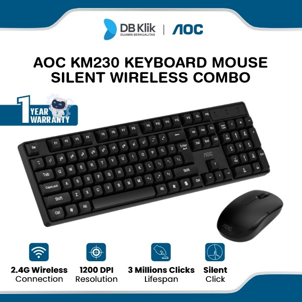 AOC KM230 Keyboard Mouse Silent Wireless Combo