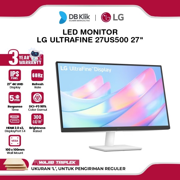 Brand Type : LG 27US500-WPanel Size(Inch) : 27 InchPanel Type : IPS FlatPanel Resolution : 3840 x 2160 (4K UHD)Aspect Ratio : 16:9 Wide