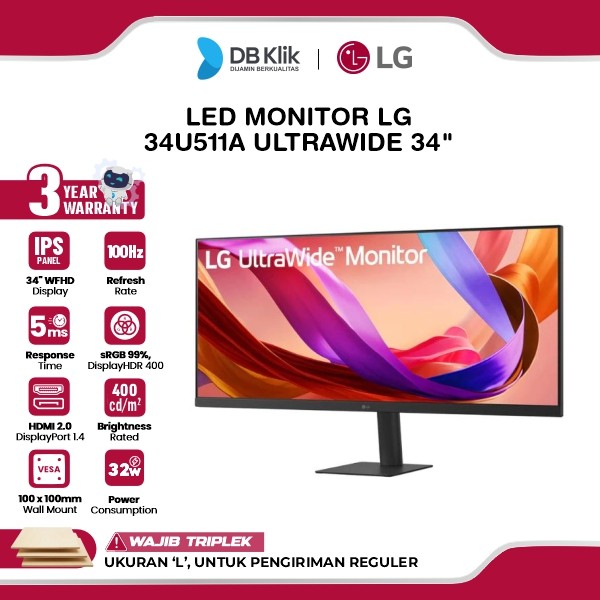 Brand Type : LG 34U511A-BPanel Size(Inch) : 34 InchPanel Type : IPS FlatPanel Resolution : 2560 x 1080 (WFHD)Aspect Ratio : 21:9 Ultrawide