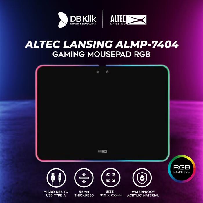 (MEMBELI BERARTI SETUJU) MOHON BACA DESKRIPSI BARANG TERLEBIH DAHULU UNTUK SEMUA BARANG YANG DI TERIMA WAJIB DI VIDEOKAN UNBOXINGNYA BILA TIDAK ADA VIDEO UNBOXING KAMI TIDAK MENERIMA KOMPLAIN DALAM BENTUK APAPUN Mouse Pad Gaming ALTEC LANSING ALMP-7404 352x255x5.5mm RGB - ALMP7404 Spesifikasi : ALMP7404 Bahan Acrylic (Waterproof) Alas mousepad menggunakan bahan Rubber Koneksi menggunakan Micro USB ke USB Type A Ukuran Mousepad : 352 x 255 x 5.5mm Fitur : Mousepad memiliki fungsi RGB, selain itu pada mousepad memiliki tombol on off yang dapat digunakan untuk menyalakan / mematikan LED, dan selain itu juga terdapat tombol untuk mengubah mode LED tersebut. Dan, Mousepad ini memiliki bahan akrilik, jadi mousepad ini memiliki texture yang keras, tidak seperti kebanyakan mousepad pada umumnya yang bahannya seperti dari kain, dan lentur. untuk dari feel saat menggunakan mousepad ini, tidak jauh berbeda dengan mousepad lainnya, hanya sajah yang membedakan, rasa gesekan saat menggerakkan mouse menjadi lebih mulus dan nyaman. selain tampilan dan modelnya yang keren, keuntungan menggunakan mousepad ini adalah, mudah dibersihkan, tidak harus sampai dicuci, seperti mousepad bahan kain. nb :*SELAMA PRODUK TAYANG = READY STOK *UNTUK BARANG PECAH BELAH DISARANKAN UNTUK MENGGUNAKAN TAMBAHAN BUBBLE WRAP / TRIPLEK *BUBBLE WRAP SUDAH TERSEDIA DI ETALASE KAMI. SILAHKAN TAMBAHKAN KE DALAM KERANJANG ANDA *PASTIKAN ALAMAT PENGIRIMAN TELAH BENAR. KESALAHAN ALAMAT BUKAN TANGGUNG JAWAB KAMI *Untuk PERTANYAAN & KELUHAN bisa langsung CHAT ADMIN KAMI *HAPPY SHOPPING