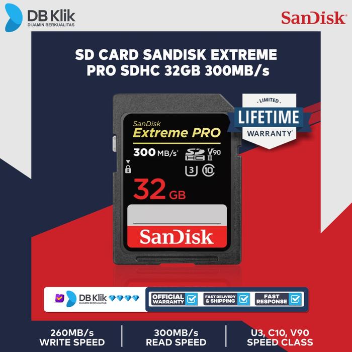 (MEMBELI BERARTI SETUJU) MOHON BACA DESKRIPSI BARANG TERLEBIH DAHULU UNTUK SEMUA BARANG YANG DI TERIMA WAJIB DI VIDEOKAN UNBOXINGNYA BILA TIDAK ADA VIDEO UNBOXING KAMI TIDAK MENERIMA KOMPLAIN DALAM BENTUK APAPUN SD Card SanDisk Extreme PRO SDHC 32GB 300MB/s (SDSDXDK-032G-GN4IN) Manfaatkan Kinerja Pro Fotografer dan videografer profesional membutuhkan perlengkapan profesional untuk mengatasi setiap tahap produksi yang berat. Kartu SanDisk Extreme PRO SDHC/SDXC UHS-II menghadirkan kinerja luar biasa yang dibutuhkan profesional untuk meningkatkan efektivitas proyek kreatif, dari sebelum hingga pasca produksi. Kecepatan Baca hingga 300MB/dtk dan Tulis 260MB/dtk1 Untuk peningkatan efisiensi alur kerja pasca-produksi, kartu SanDisk Extreme PRO SDHC dan SDXC UHS-II menghadirkan kecepatan transfer ultra tinggi hingga 300MB/dtk. Kecepatan baca hingga 260MB/dtk menangani bidikan cepat, mode burst berurutan, dan pemotretan RAW+JPEG dengan mudah. Spesifikasi Lengkap Capacity : 32 GB Form Factor : SDHC Kompatibilitas : Kompatibel dengan perangkat host yang mendukung SDHC/SDXC. Host yang mendukung UHS-II atau pembaca SanDisk UHS-II diperlukan untuk kinerja UHS-II Dimensi (L x W x H) : 2.17mm x 23.91mm x 31.92mm Sequential Read Performance : Up to 300MB/s Sequential Write Performance : Up to 260MB/s nb :*SELAMA PRODUK TAYANG = READY STOK *UNTUK BARANG PECAH BELAH DISARANKAN UNTUK MENGGUNAKAN TAMBAHAN BUBBLE WRAP / TRIPLEK *BUBBLE WRAP SUDAH TERSEDIA DI ETALASE KAMI. SILAHKAN TAMBAHKAN KE DALAM KERANJANG ANDA *PASTIKAN ALAMAT PENGIRIMAN TELAH BENAR. KESALAHAN ALAMAT BUKAN TANGGUNG JAWAB KAMI *Untuk PERTANYAAN & KELUHAN bisa langsung CHAT ADMIN KAMI *HAPPY SHOPPING