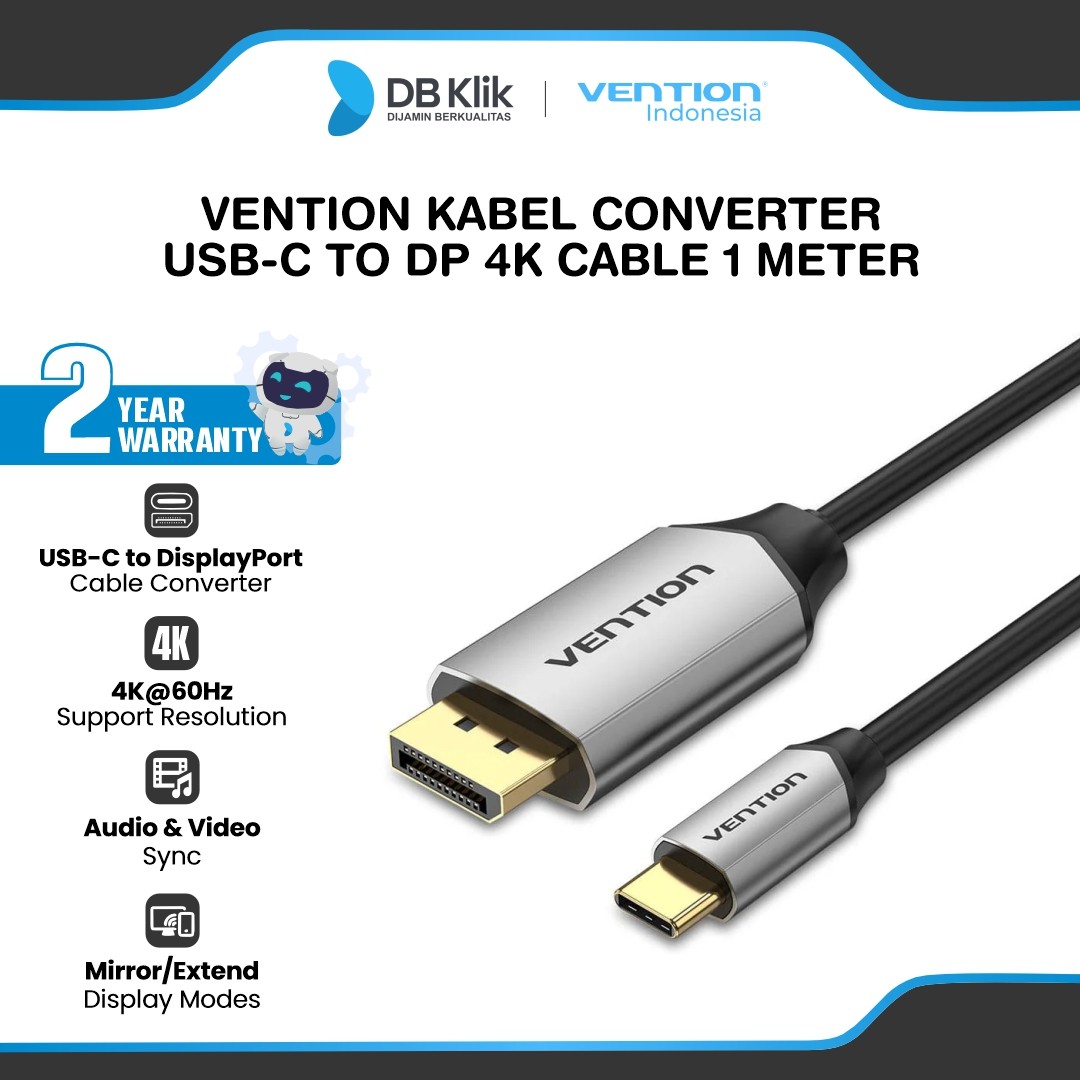 Membeli berarti setujuMohon untuk membaca deskripsi barang terlebih dahuluSetelah barang diterima wajib di video unboxing. Apabila tidak ada video unboxing, maka kami tidak akan menerima komplain dalam bentuk apapunUntuk setiap pembelian unit pecah belah wajib menambahkan bubble + triplek dan asuransiApabila tidak menambahkan bubble + triplek dan asuransi maka segala kerusakan dan kehilangan bukan tanggung jawab kamiVention Kabel Converter USB-C to DP 4K Cable 1M (CGZBF)NOTE :Tidak semua device colokan Type C bisa Support, pastikan device Type C nya harus Support Out DisplayPort/Thunderbolt3/MHLFEATURES:Plug & PlayTwo Modes (Mirror mode, Extension mode)Support Resolution 4K@60Hz/2K@144Hz/1080p@144HzHD Smooth Playing, with independent control chipMultiple System Compatible : Mac OS, Windows, LinuxSPECIFICATIONS:Brand : VentionProduct : USB-C to DP CableColor : BlackInterface : USB-C/DPInterface Technics : Gold-platedConductor : Tinned CopperShell : Alumunium AlloyChip : WTPD501Shielding : Alumunium Foil + GNDJacket : PVCOD : 4.5mmAWG : 30AWG + 26AWG2 Years WarrantyNote : Selama produk tayang = ready stokPastikan alamat pengiriman telah benar, kesalahan alamat bukan tanggung jawab kami Untuk pertanyaan maupun keluhan bisa langsung chat admin kami